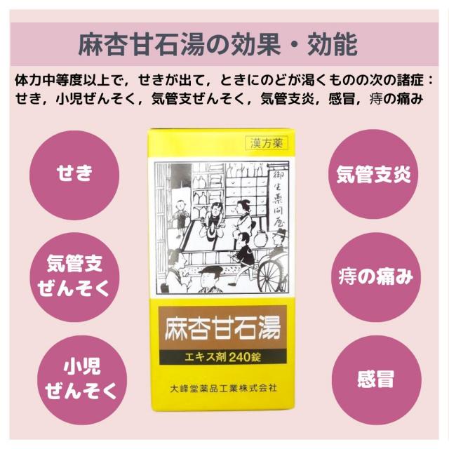 体力中等度以上で,せきが出て,ときにのどが渇くものの次の諸症:せき,小児ぜんそく,気管支ぜんそく,気管支炎,感冒,痔の痛み |